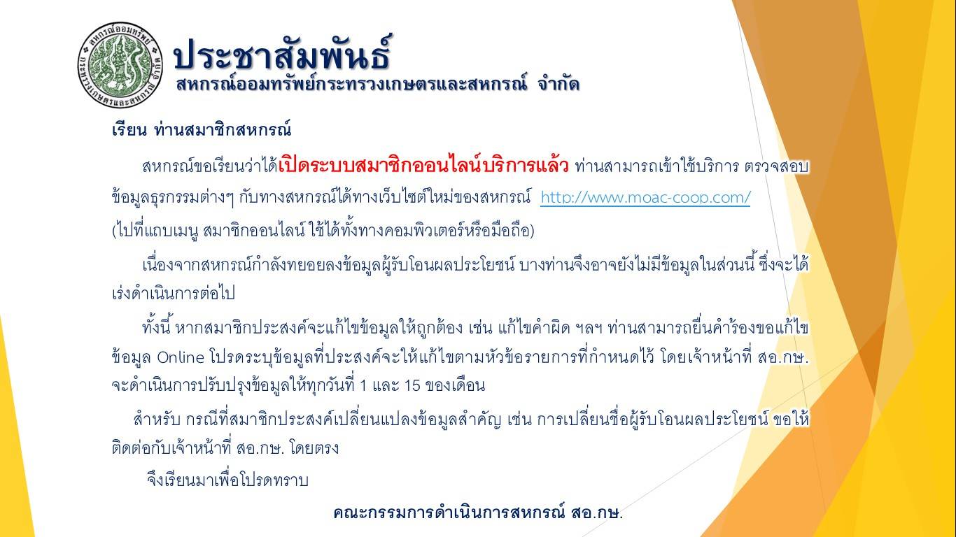 เปิดระบบสมาชิกออนไลน์ บริการแล้ว