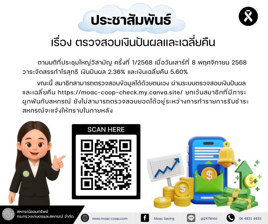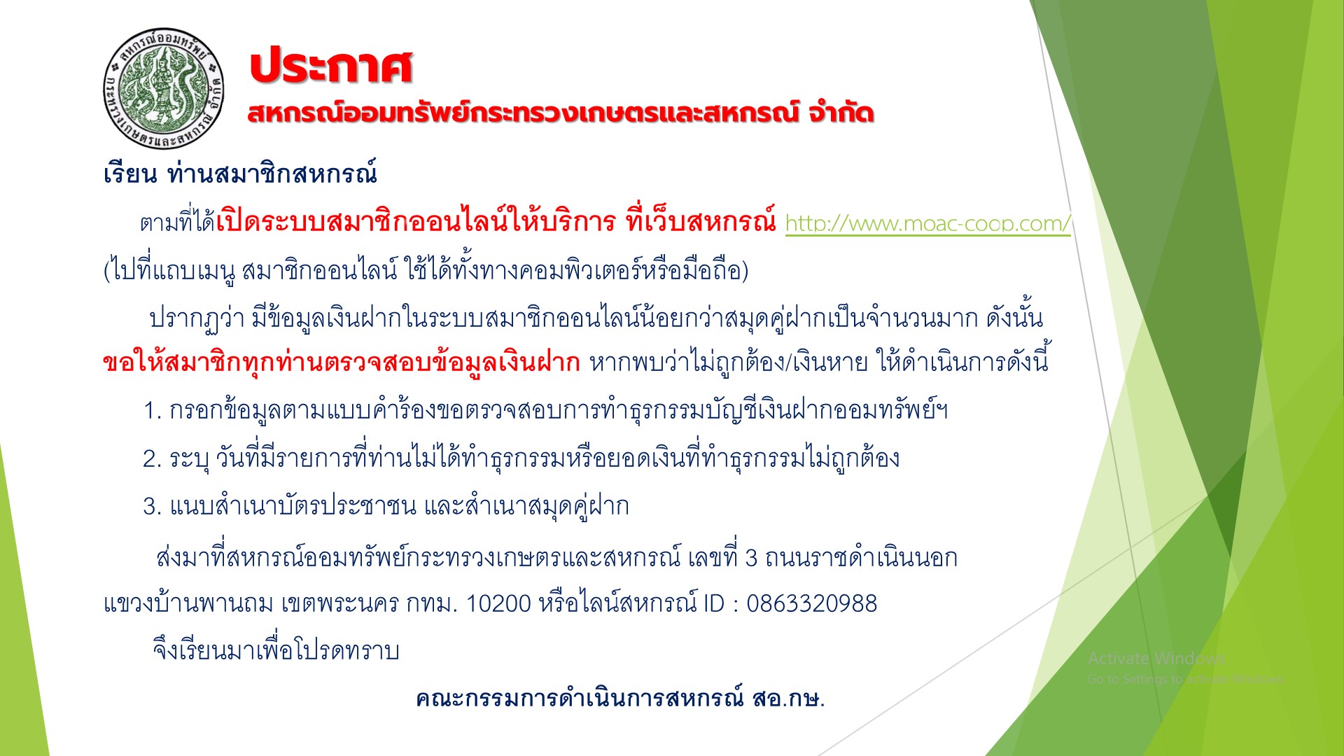 ขอให้สมาชิกทุกท่านตรวจสอบข้อมูลเงินฝาก