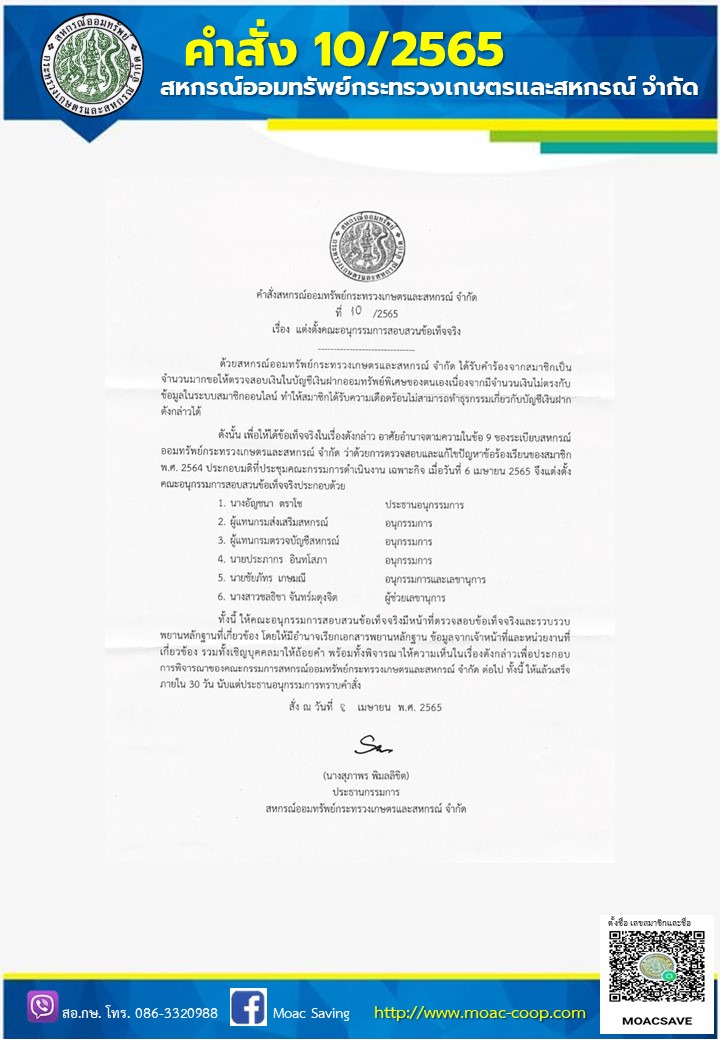 คำสั่งที่10/2565 แต่งตั้งคณะอนุกรรมการสอบสวนข้อเท็จจริง