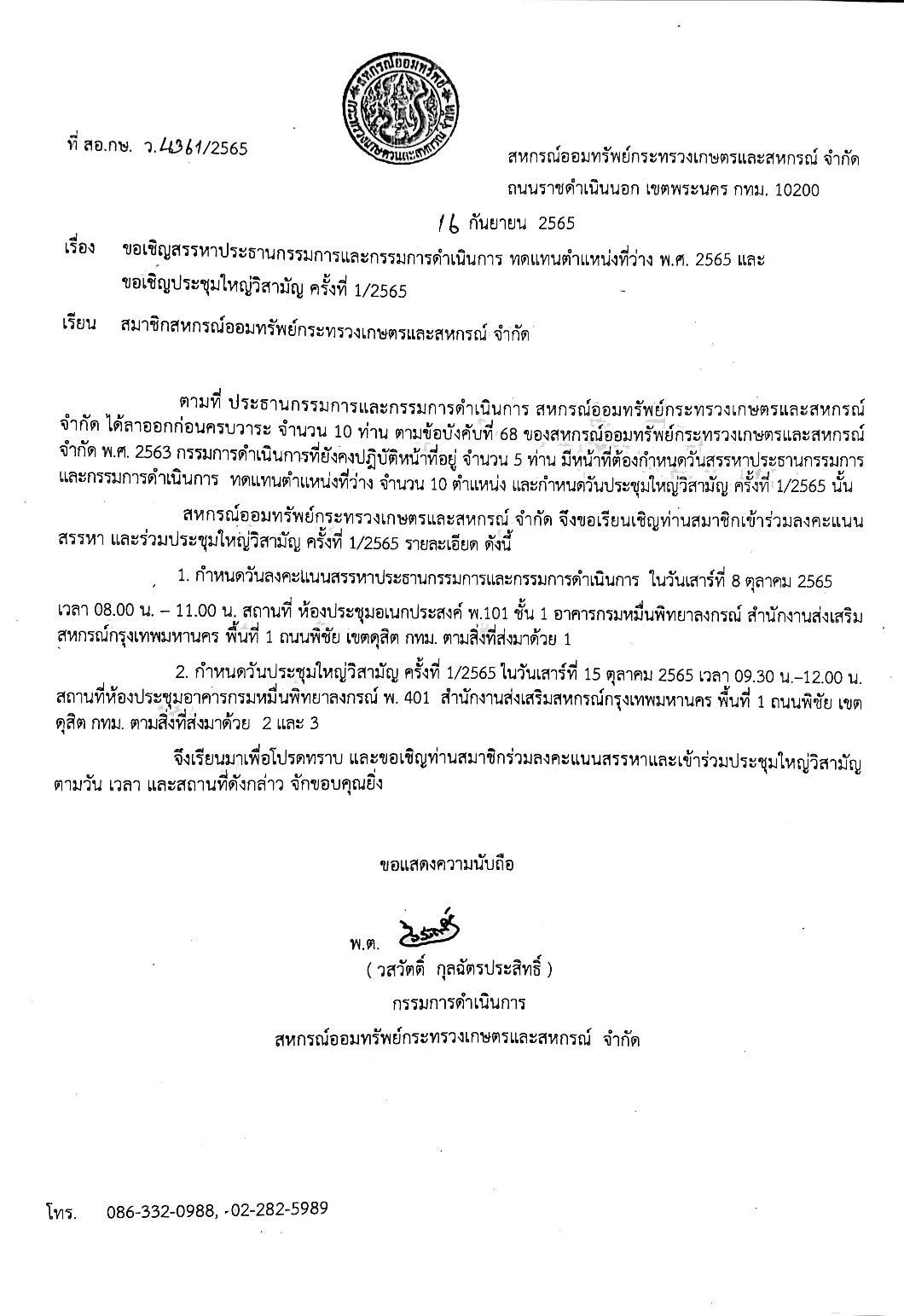 ขอเชิญสรรหาประธานกรรมการและกรรมการดำเนินการ ทดแทนตำแหน่งที่ว่าง พ.ศ.2565 และขอเชิญประชุมใหญ่วิสามัญ ครั้งที่ 1/2565