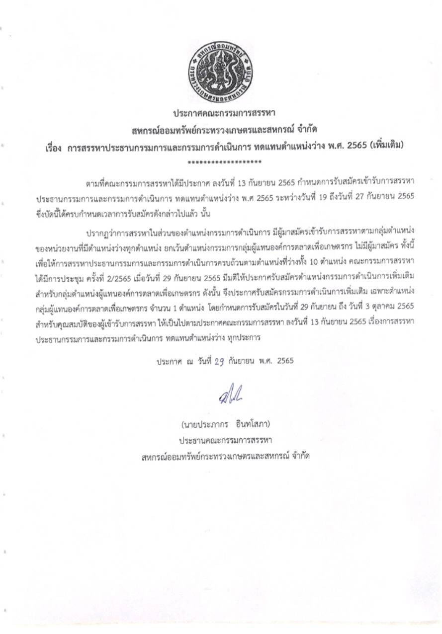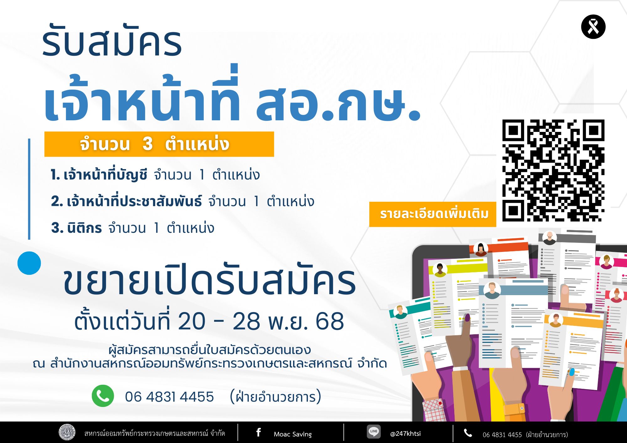 ประกาศ สอ.กษ. เรื่อง ขยายการสรรหาบุคลเพื่อบรรจุและแต่งตั้งเป็นเจ้าหน้าที่สหกรณ์