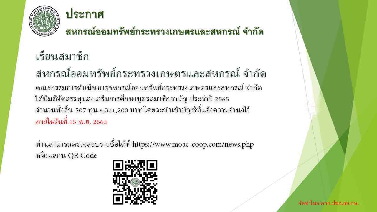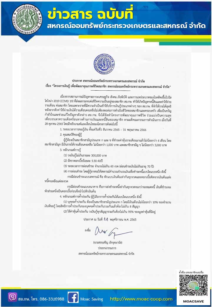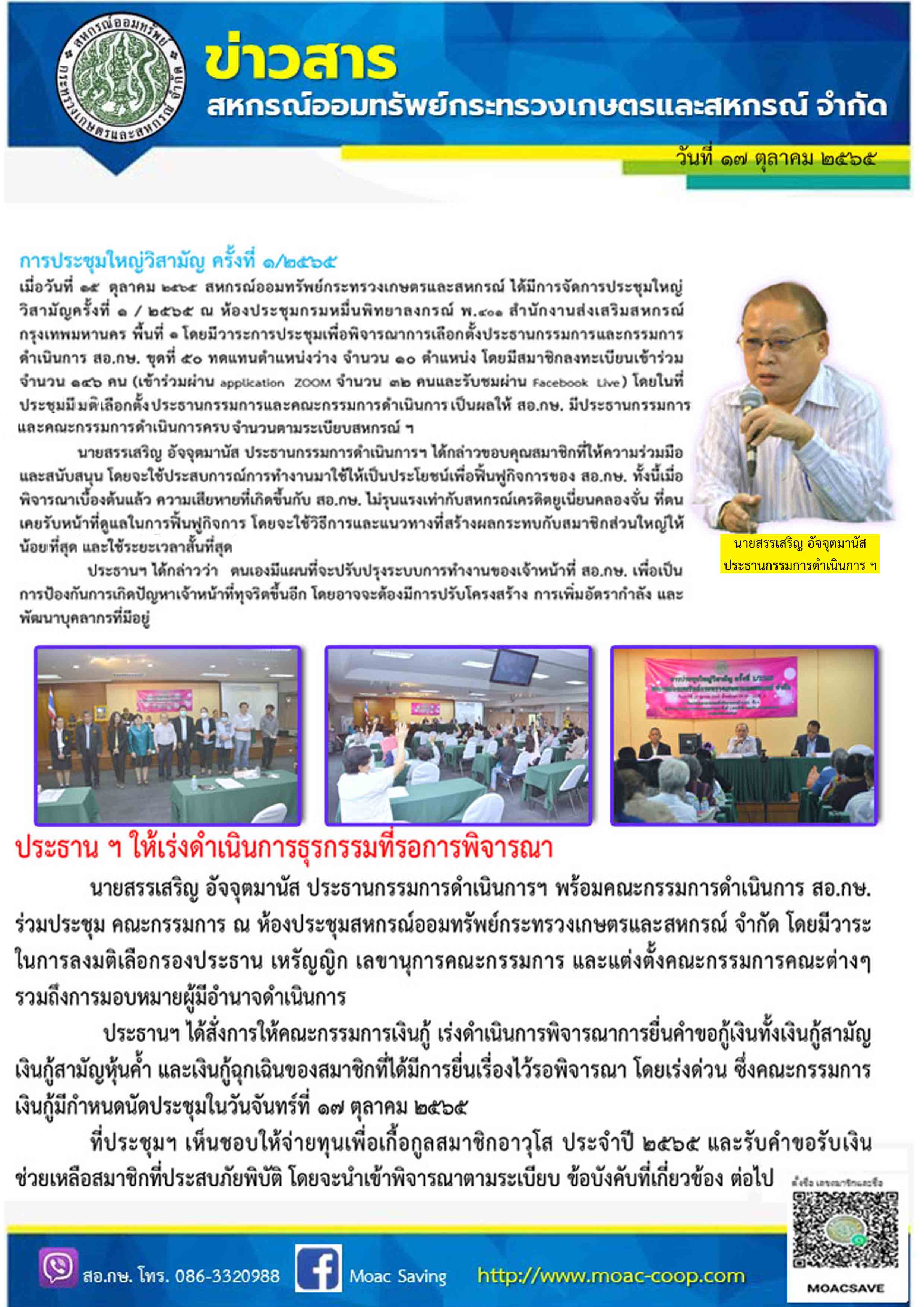 ข่าวประชาสัมพันธ์ สหกรณ์ออมทรัพย์กระทรวงกษตรและสหกรณ์ วันที่ ๑๖ ตุลาคม ๒๕๖๕