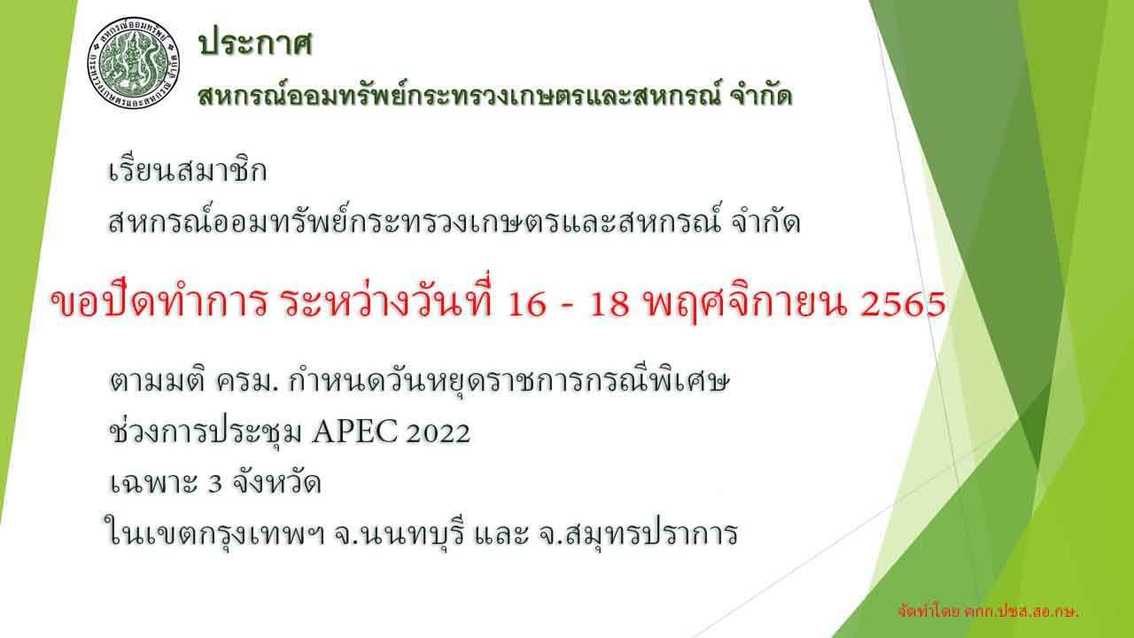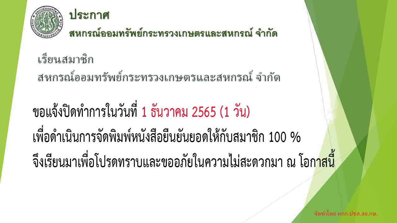 ขอปิดทำการ วันที่ 5 - 6 เมษายน 2565 ตามคำสั่งของ กรมส่งเสริมสหกรณ์ และ กรมตรวจบัญชีสหกรณ์