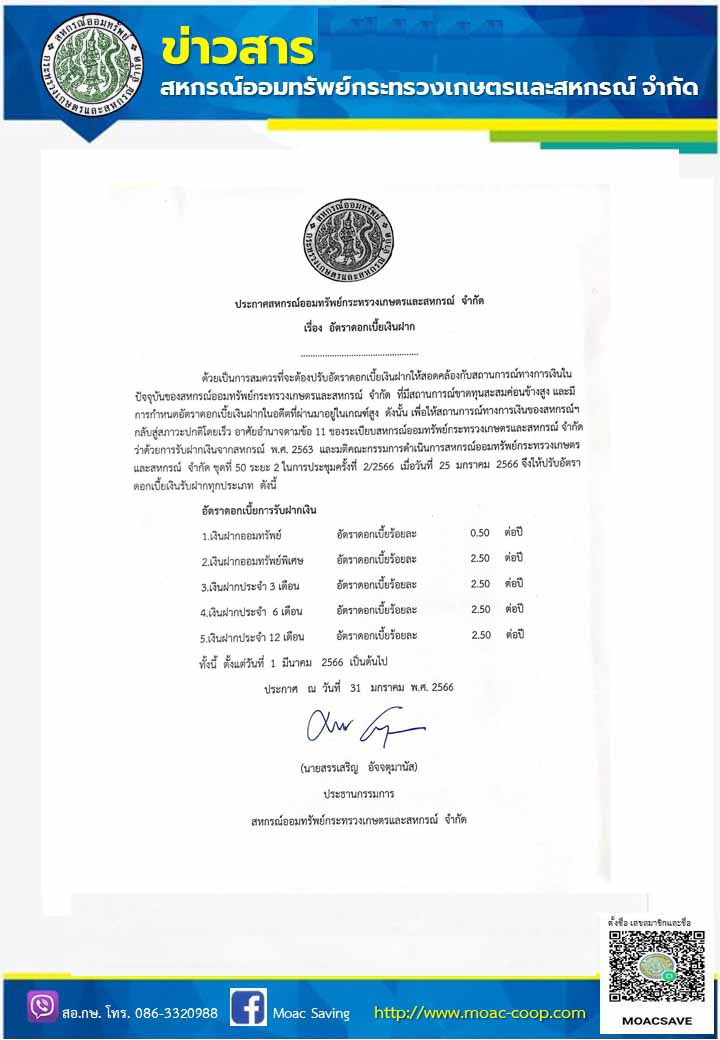 สารจากสหกรณ์สหกรณ์ออมทรัพย์กระทรวงเกษตรและสหกรณ์ จำกัด