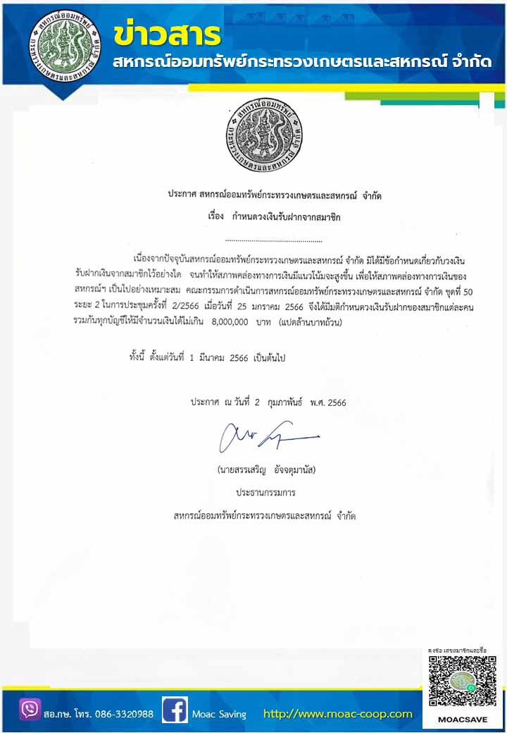 กำหนดวงเงินรับฝากจากสมาชิก สอ.กษ.