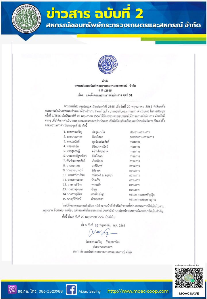 คำสั่งแต่งตั้งคณะกรรมการดำเนินการ สอ.กษ..ชุดที่ 51 พ.ศ. 2566