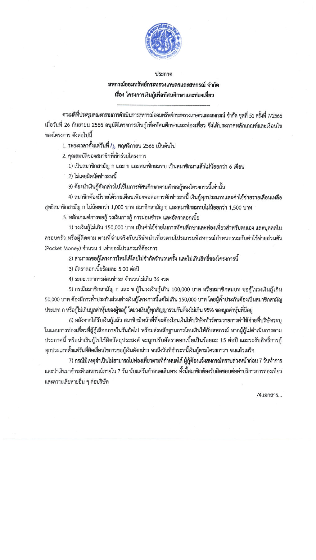 ประกาศ สอ.กษ. เรื่องโครงการเงินกู้เพื่อทัศนศึกษา