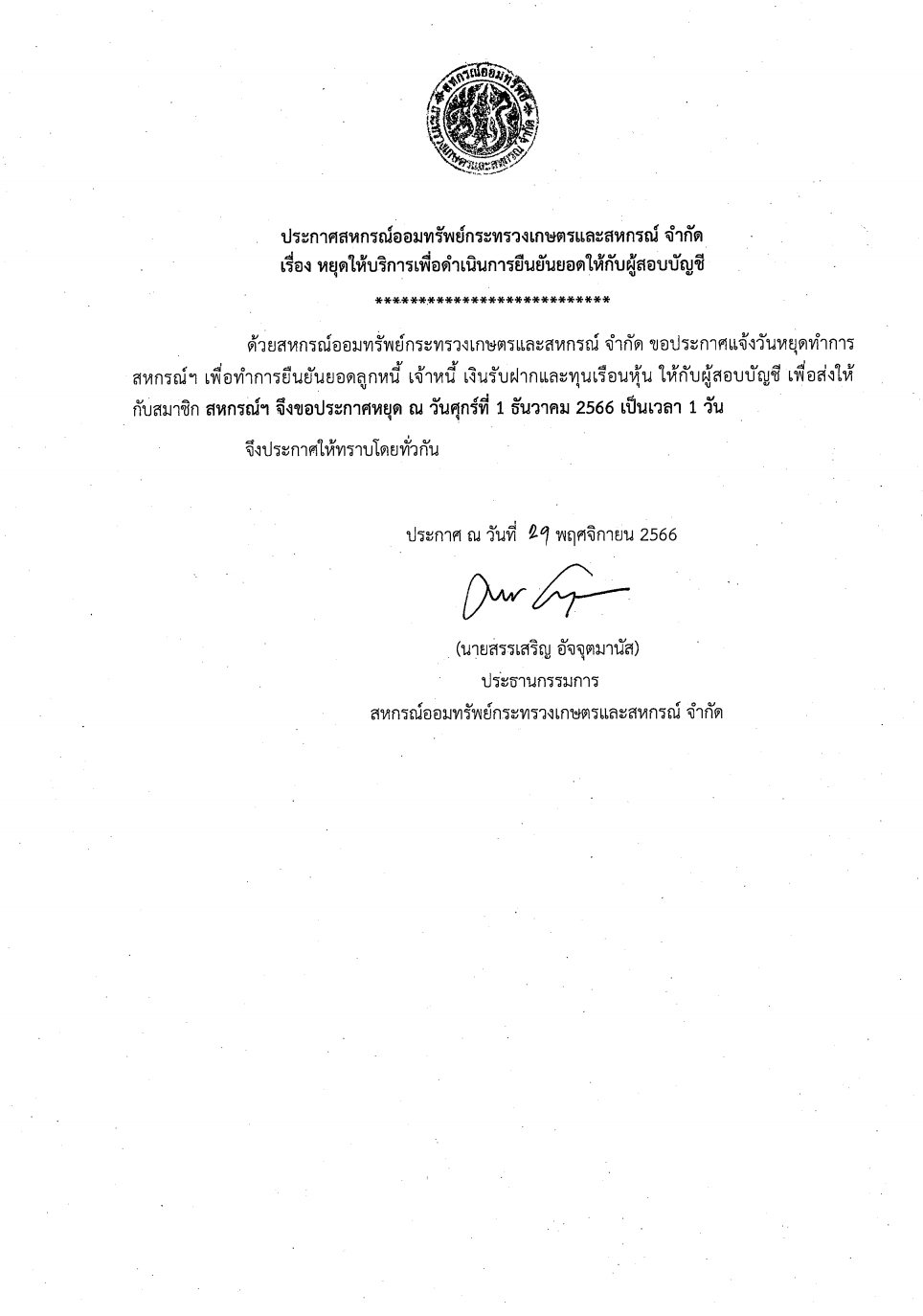 ประกาศ สอ.กษ. เรื่องขอหยุดให้บริการในวันศุกร์ที่ 1 ธันวาคม 2566