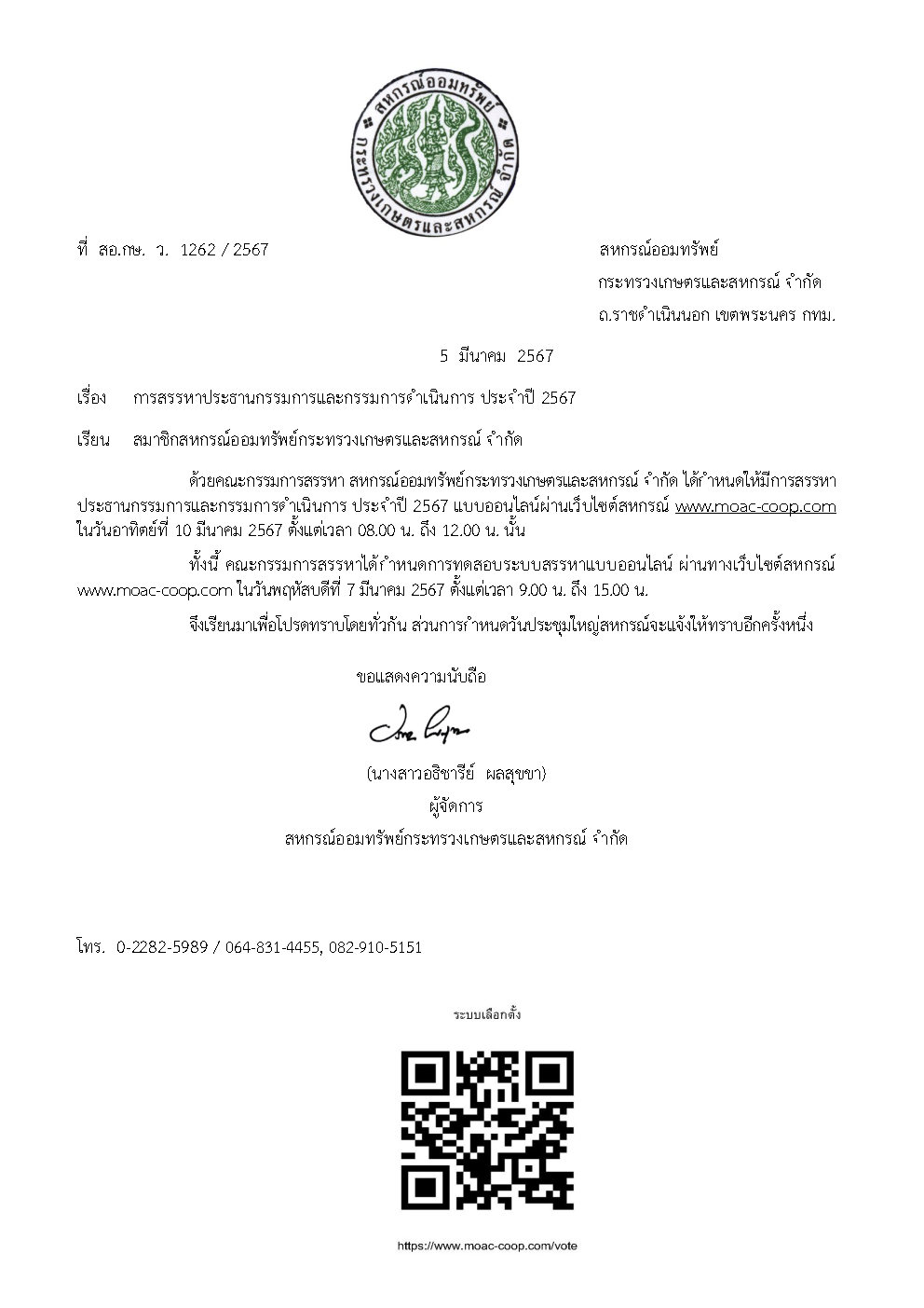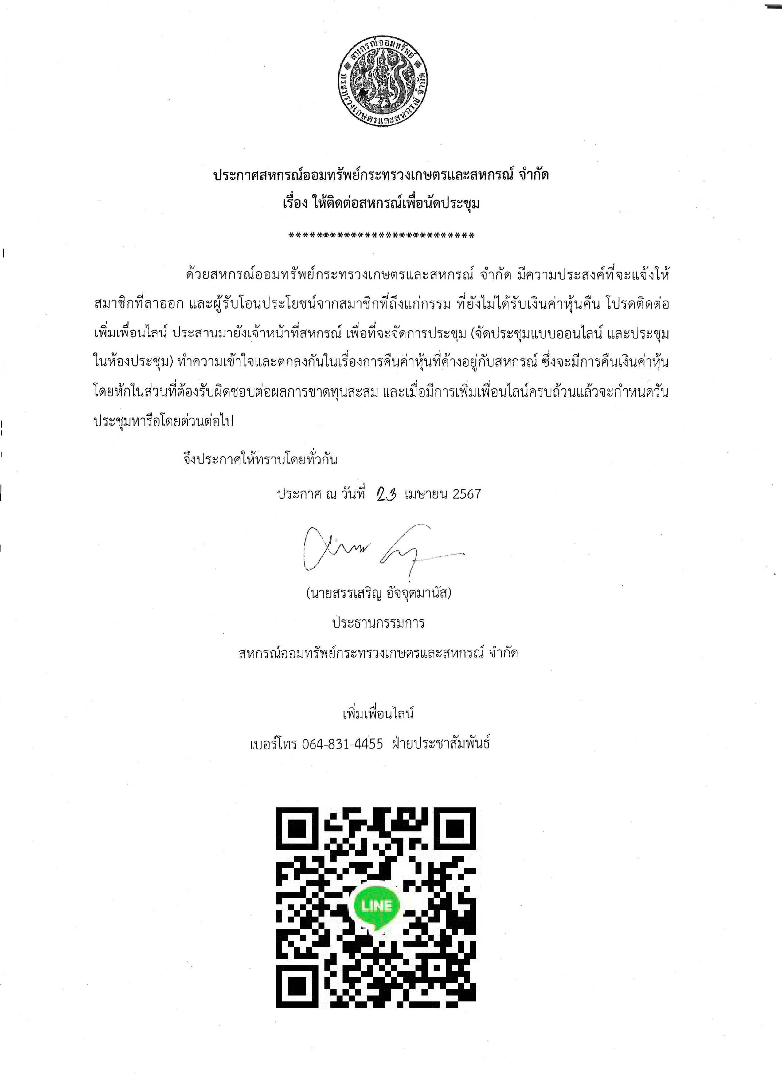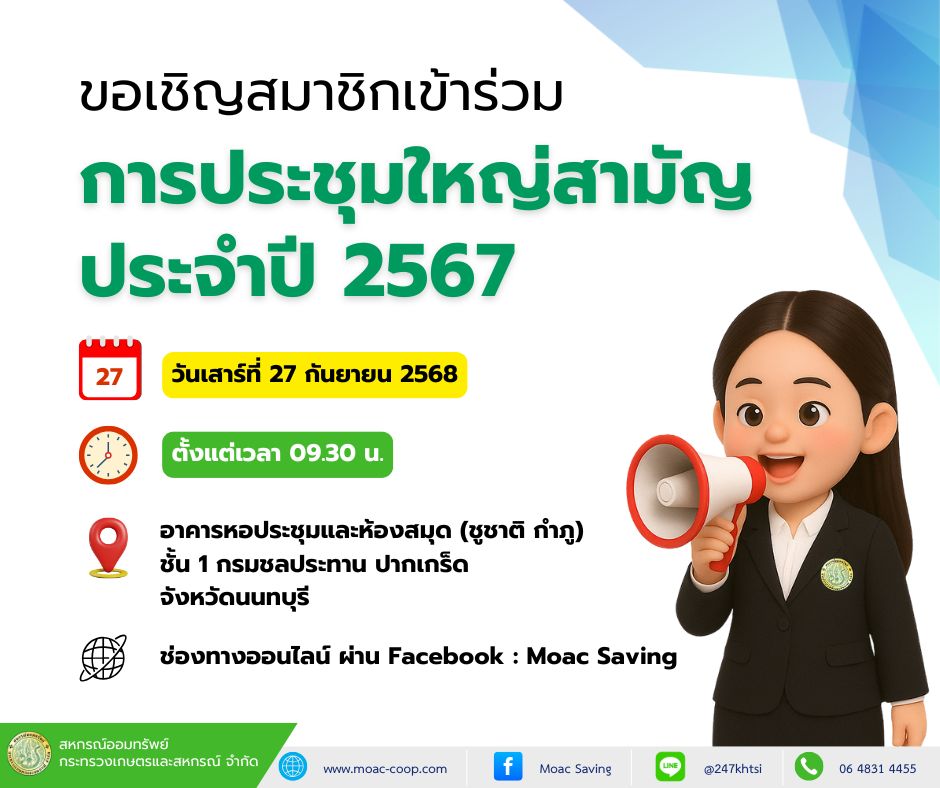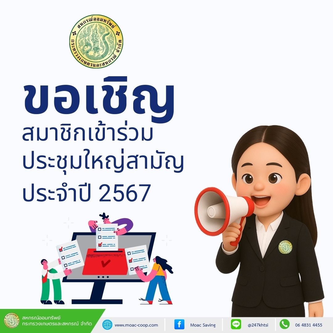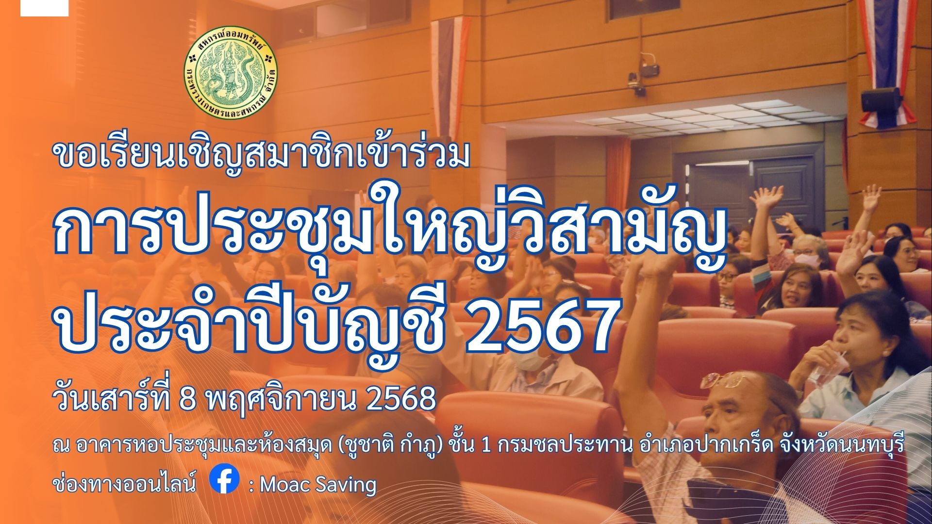 ประกาศ สอ.กษ. เรื่อง ขอเชิญเข้าร่วมประชุมใหญ่วิสามัญประจำปีบัญชี 2567