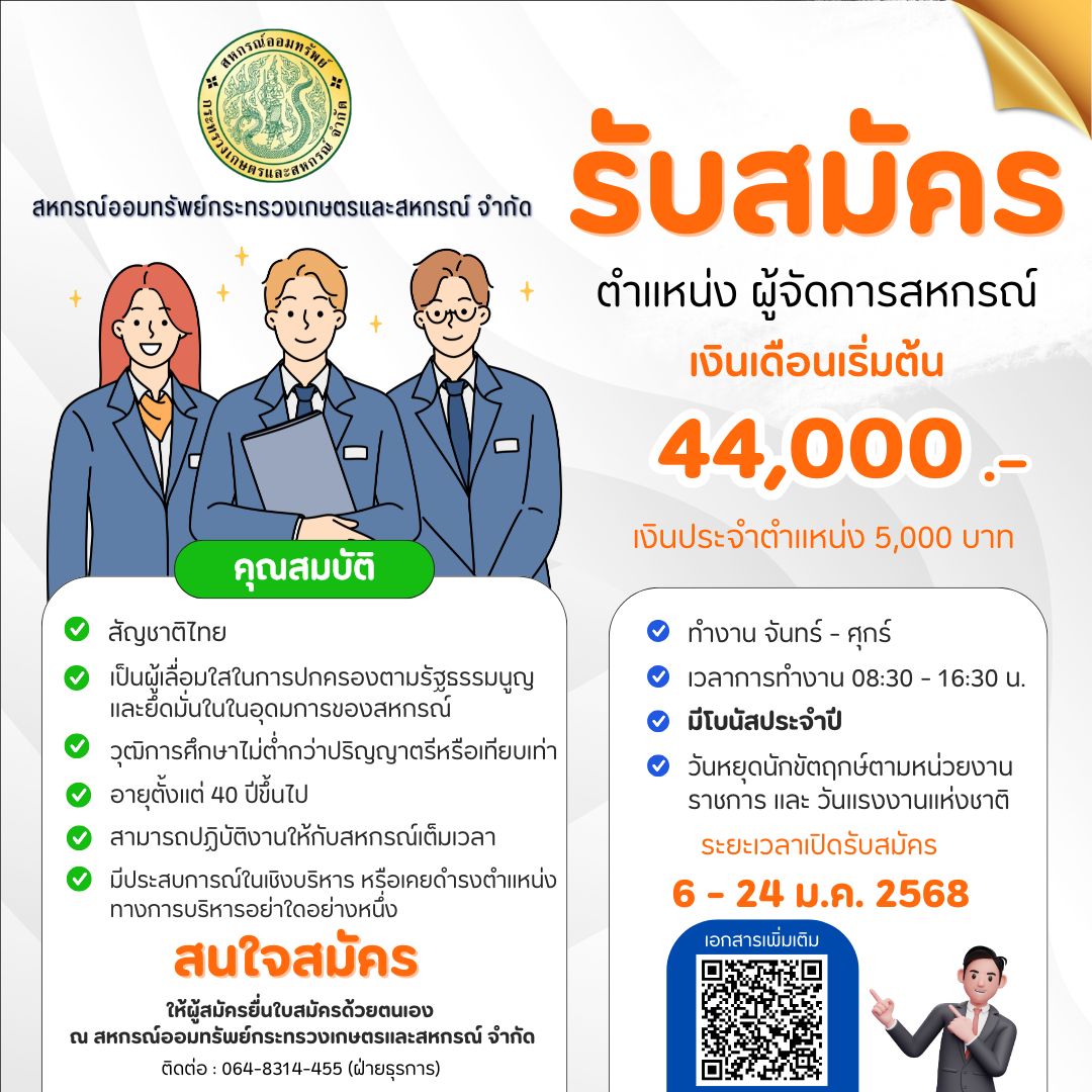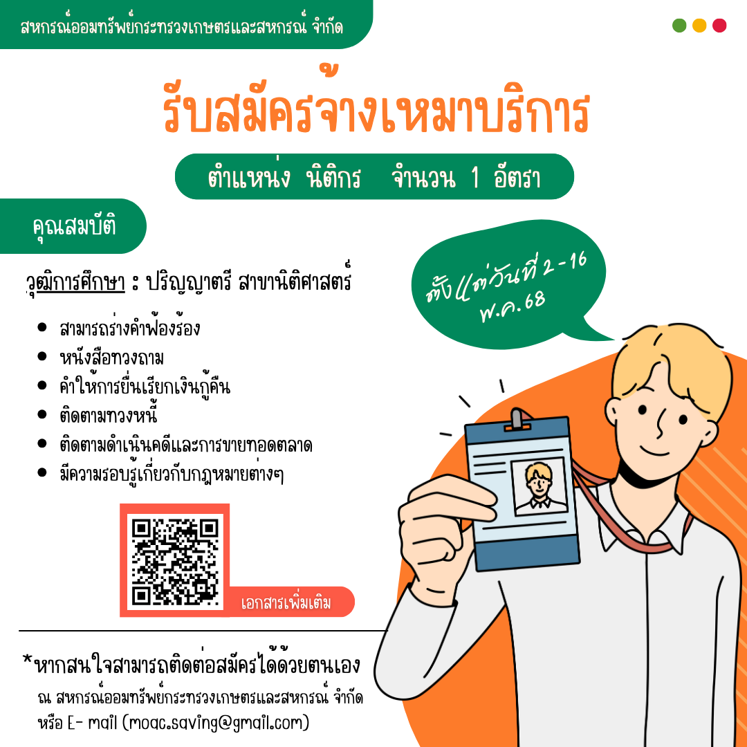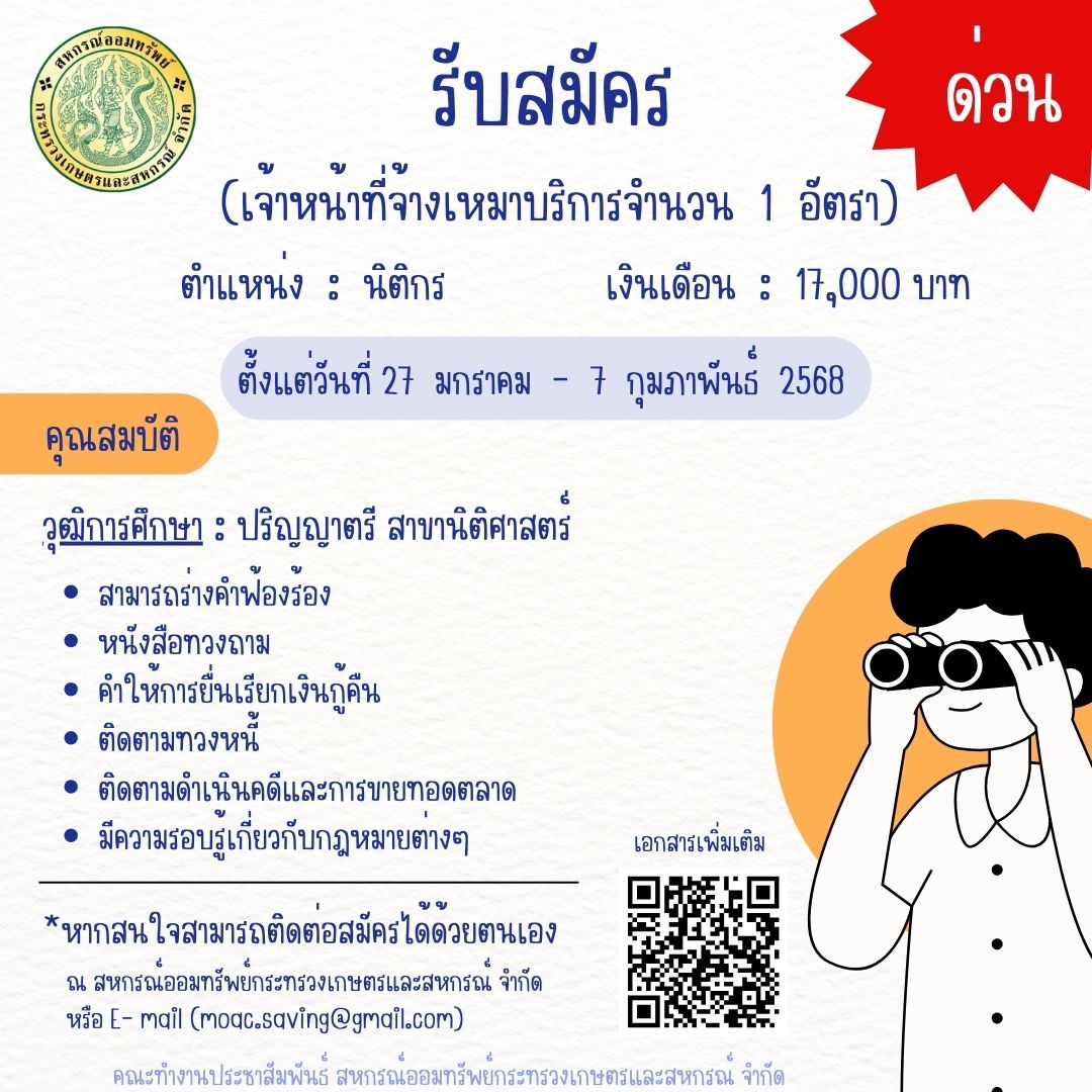 ประกาศ สอ.กษ. เรื่อง การสรรหาบุคลเพื่อบรรจุและแต่งตั้งเป็นเจ้าหน้าที่สหกรณ์