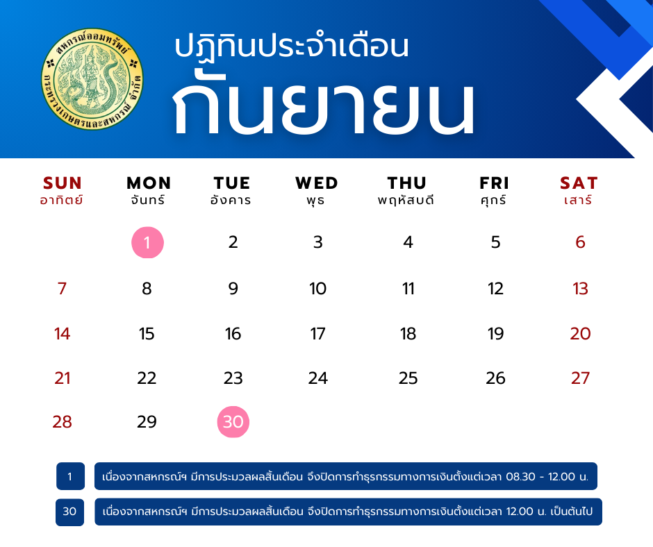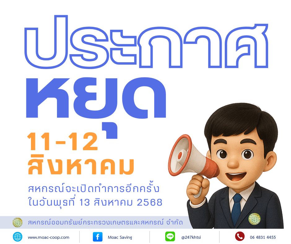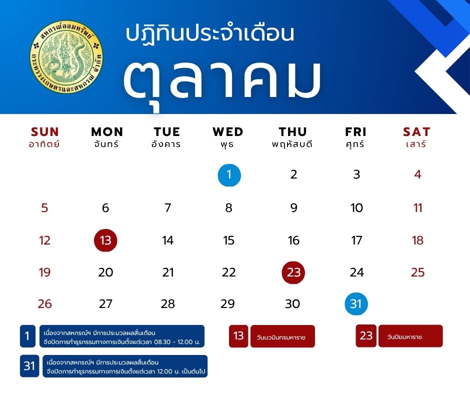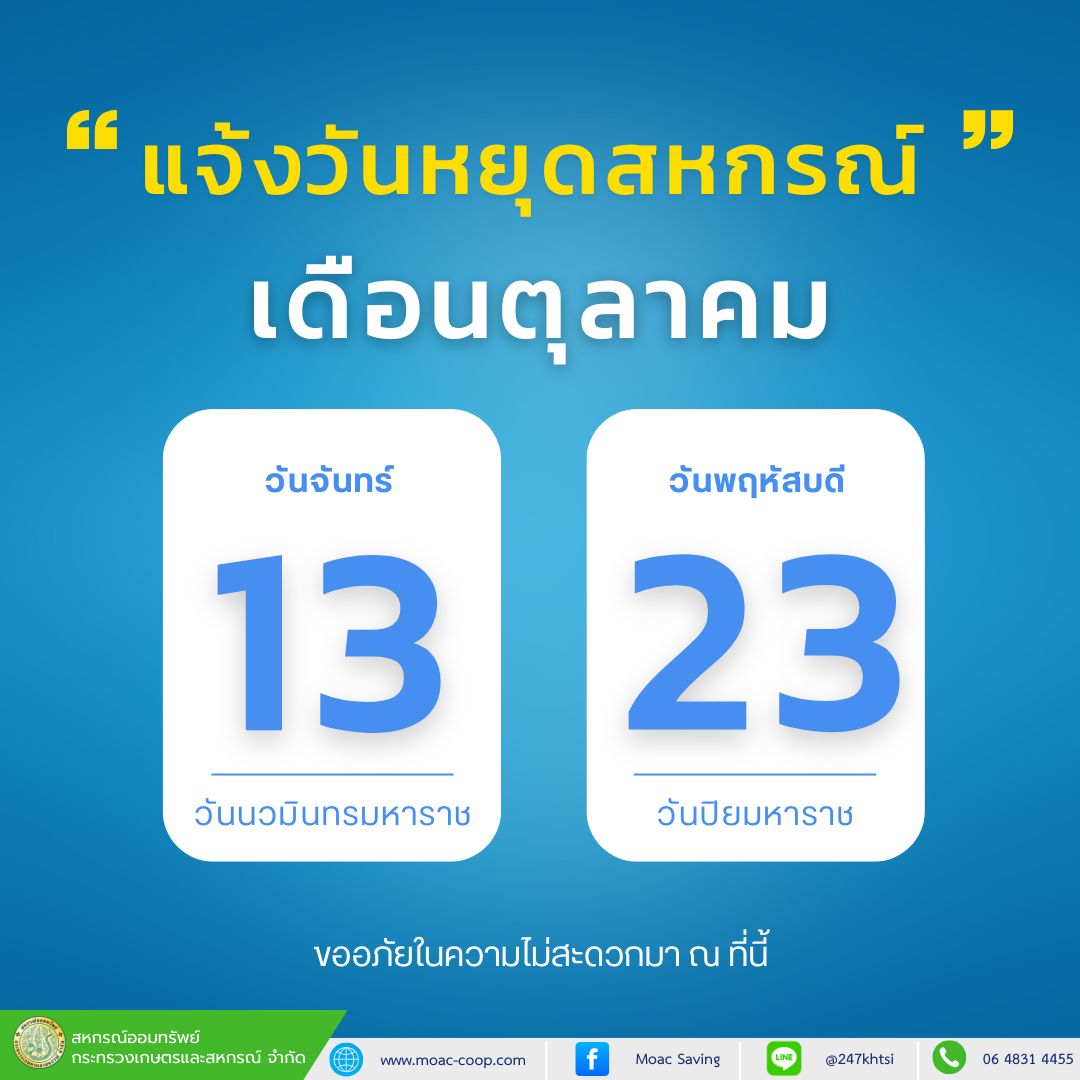 ประกาศวันหยุดทำการสหกรณ์ฯ เดือนตุลาคม 2568