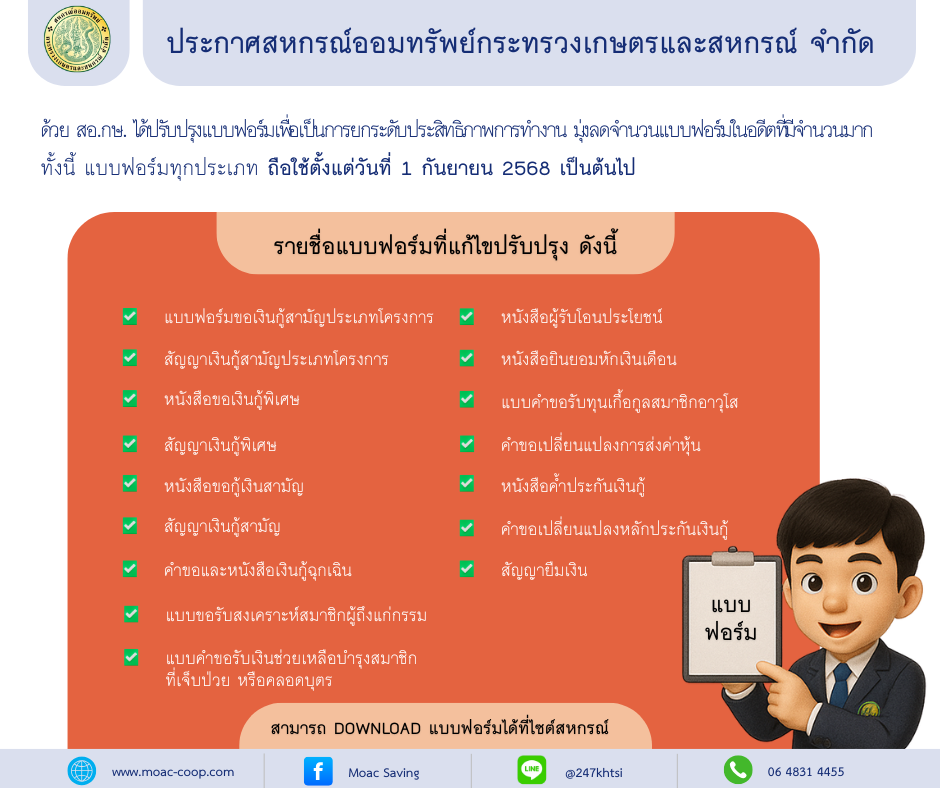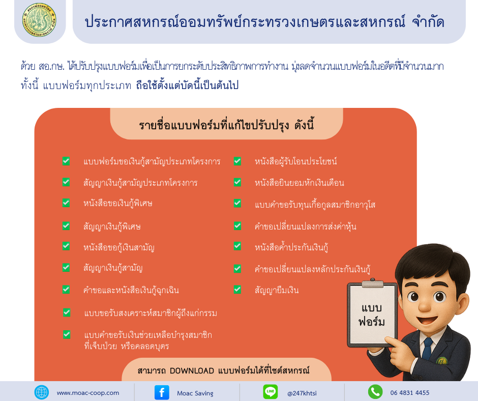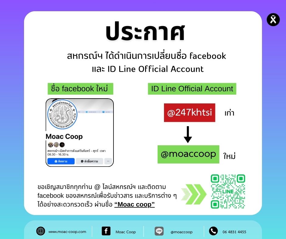 ประกาศ สหกรณ์ฯ แจ้งเปลี่ยนชื่อ facebook และ ID Line Official Account