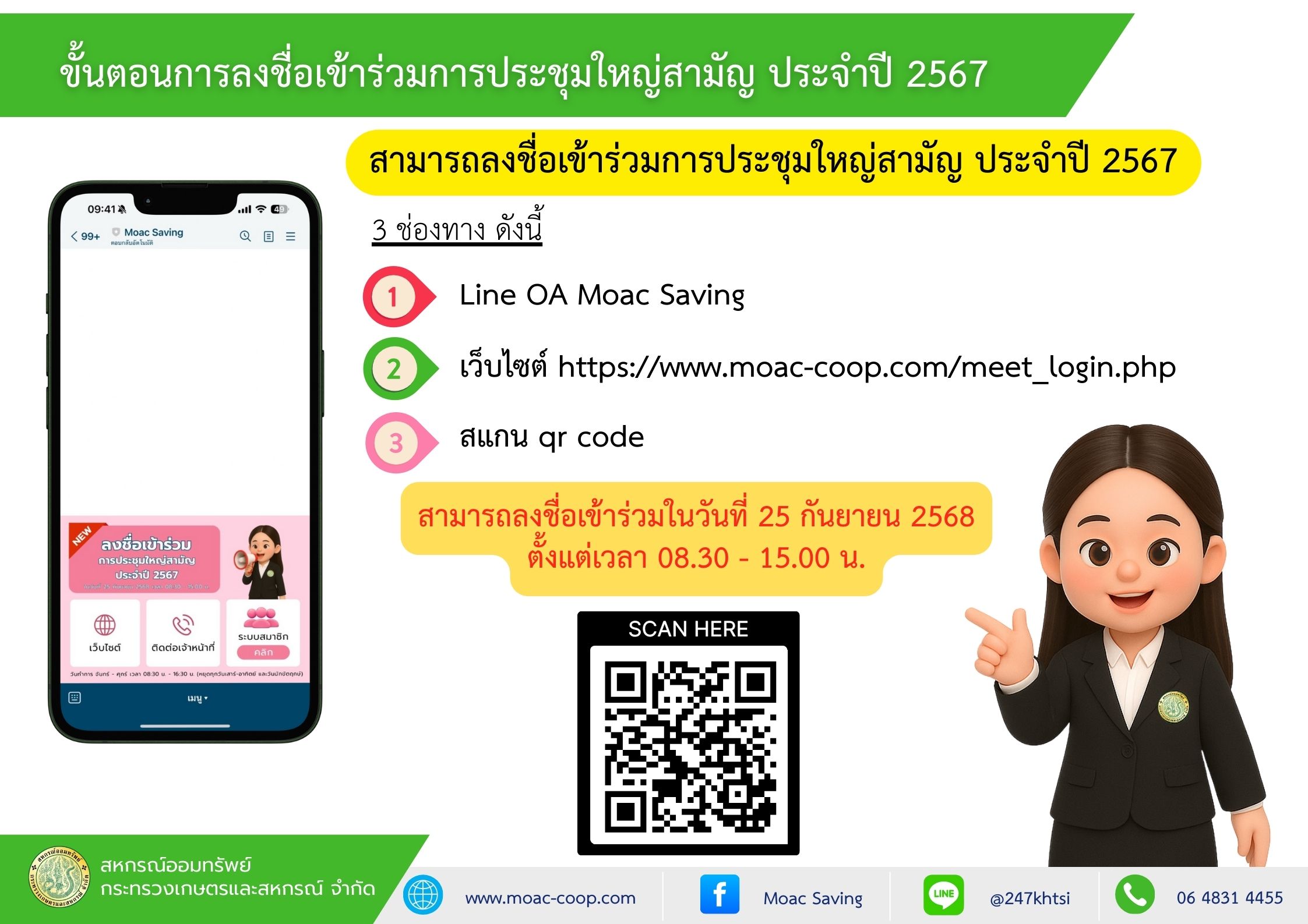 ขั้นตอนการลงชื่อเข้าร่วมการประชุมใหญ่วิสามัญ ประจำปีบัญชี 2567