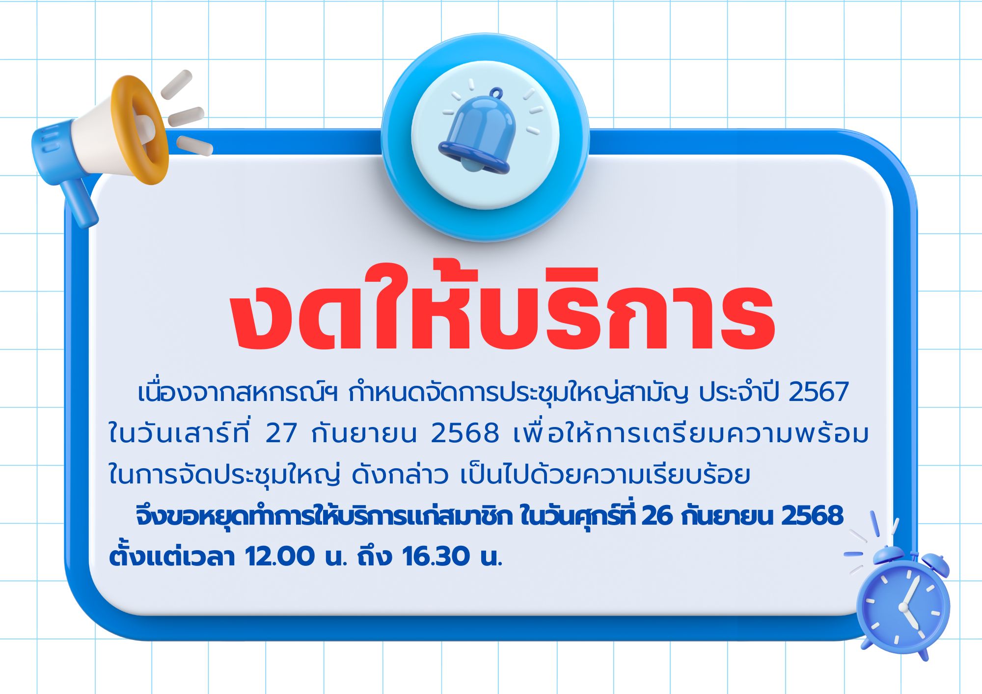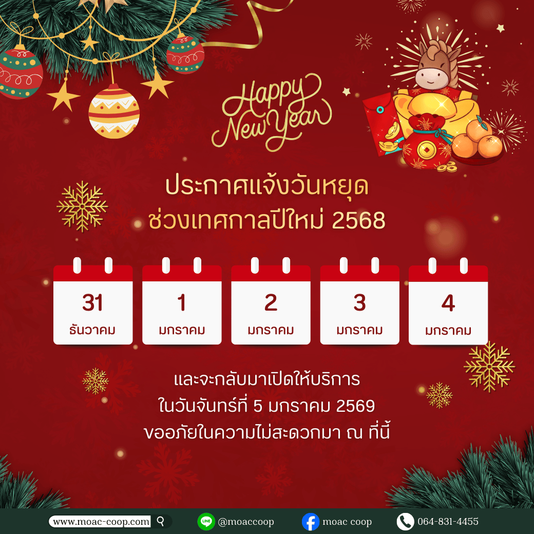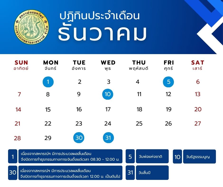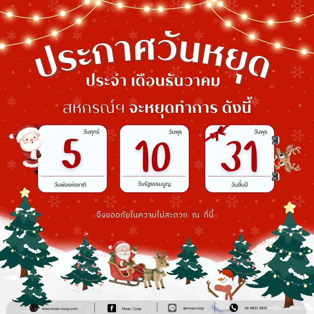 ประกาศวันหยุดทำการสหกรณ์ฯ เดือนธันวาคม 2568