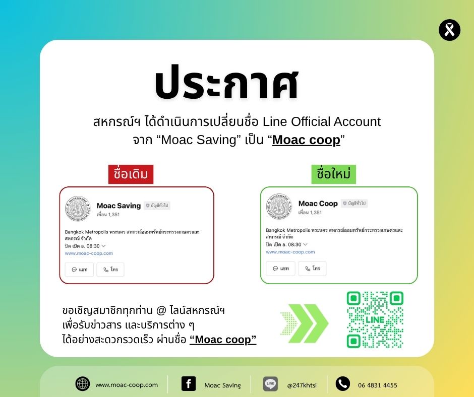 ประกาศ สหกรณ์ฯ แจ้งเปลี่ยนชื่อ Line Official Account
