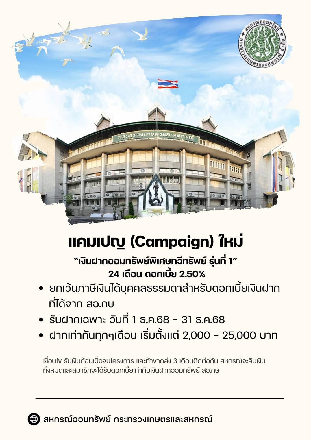 ประกาศ สอ.กษ. เรื่อง เงินฝากออมทรัพย์พิเศษทวีทรัพย์ รุ่นที่ 1 (24 เดือน)