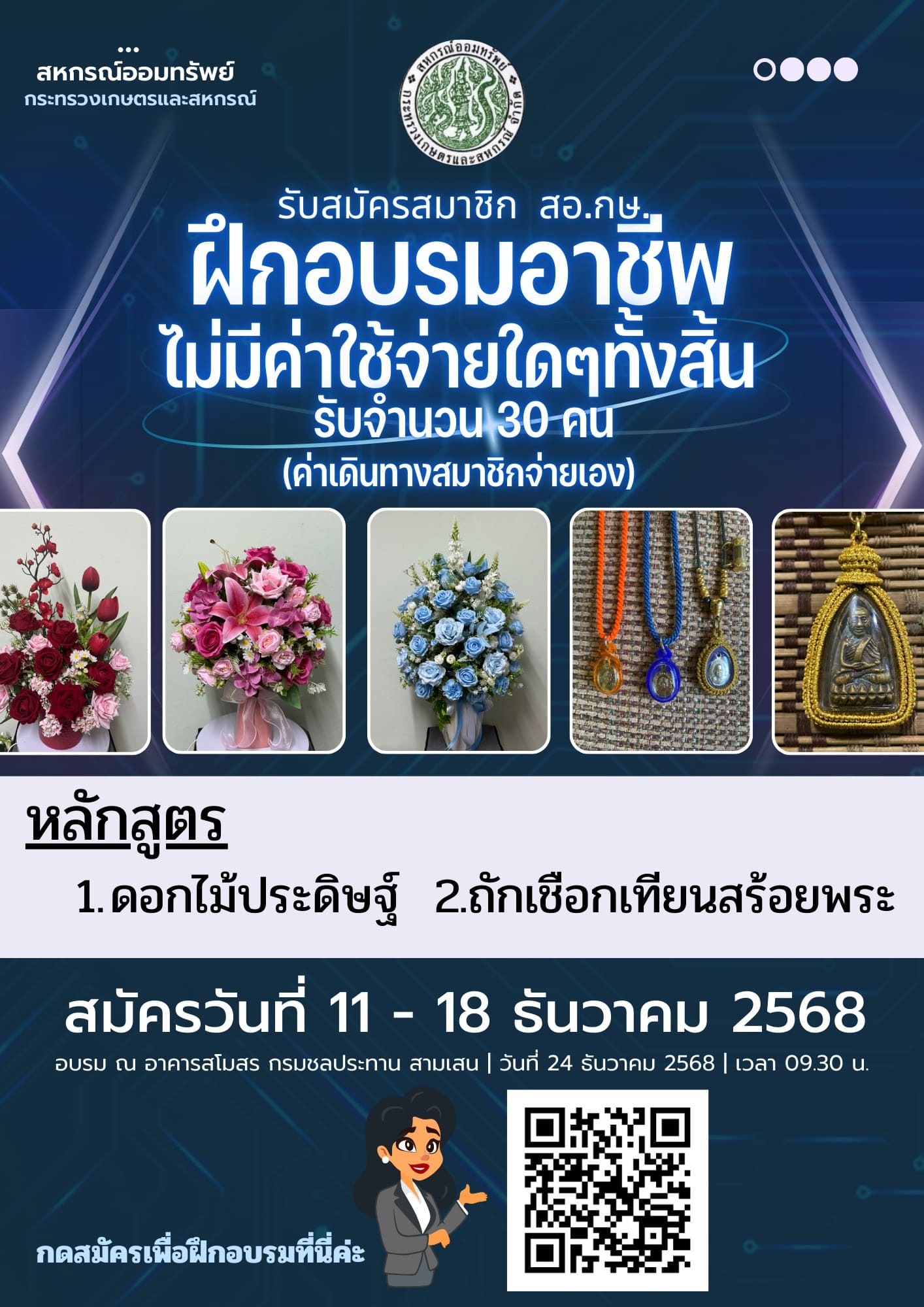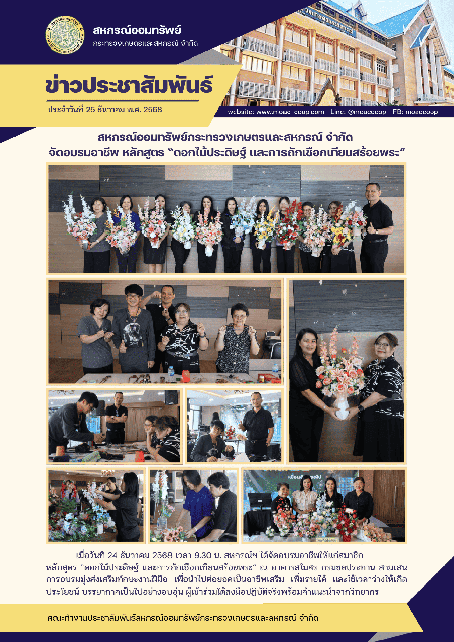 เมื่อวันที่ 24 ธันวาคม 2568 สหกรณ์ฯ ได้จัดอบรมอาชีพให้แก่สมาชิก หลักสูตร “ดอกไม้ประดิษฐ์ และการถักเชือกเทียนสร้อยพระ”