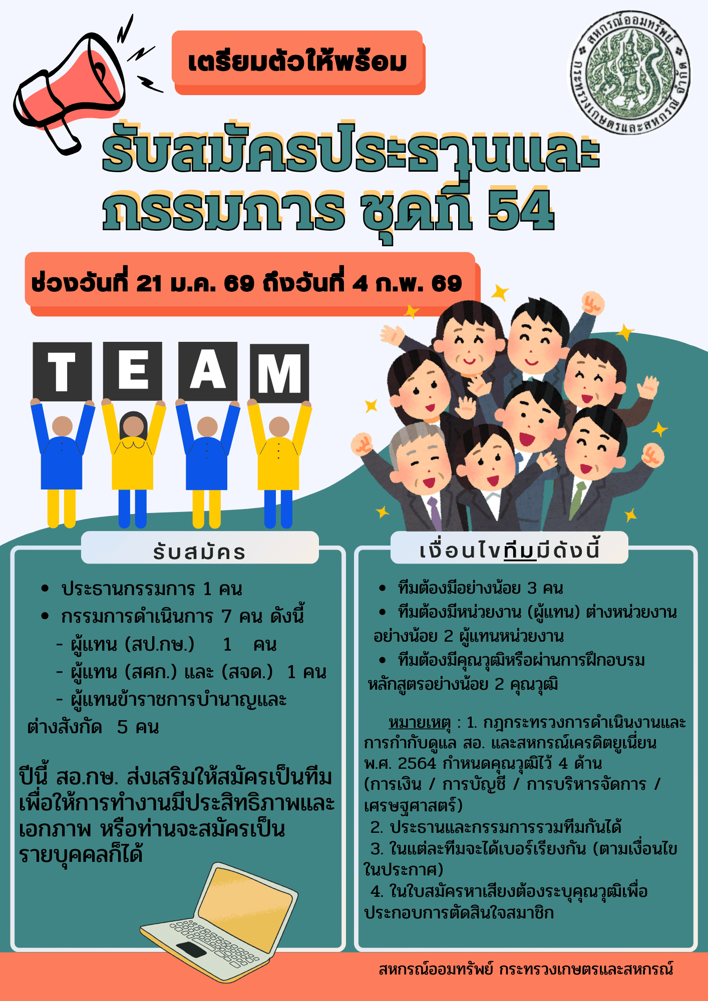 เตรียมตัวเปิดรับสมัครประธานและคณะกรรมการดำเนินการสหกรณ์ฯ ชุดที่ 54 ตั้งแต่วันที่ 21 มกราคม ถึงวันที่ 4 กุมภาพันธ์ 2569