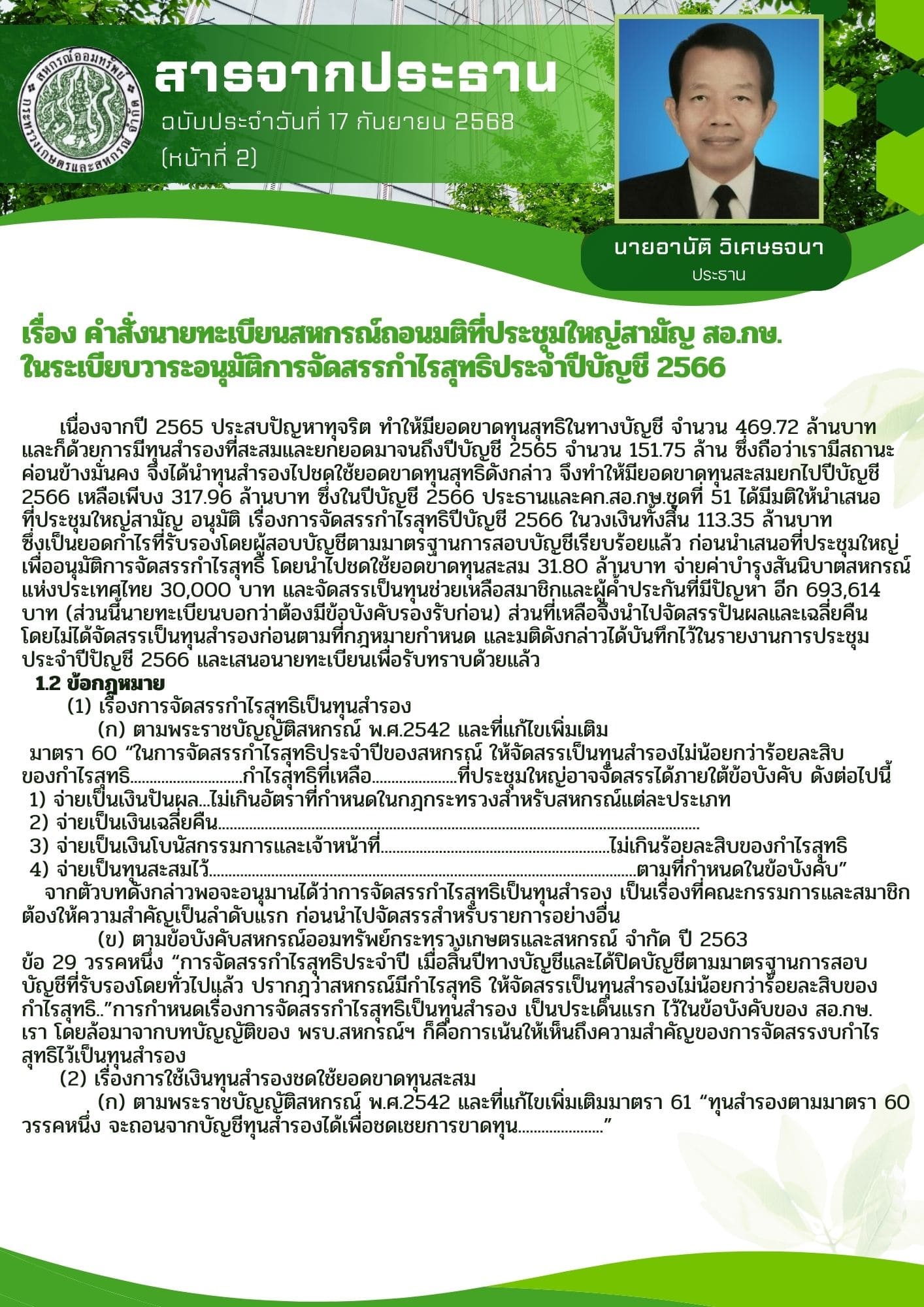สหกรณ์ฯ ขอประชาสัมพันธ์เหตุผลและความจำเป็นที่ต้องเรียกคืนเงินปันผล ปี 2566