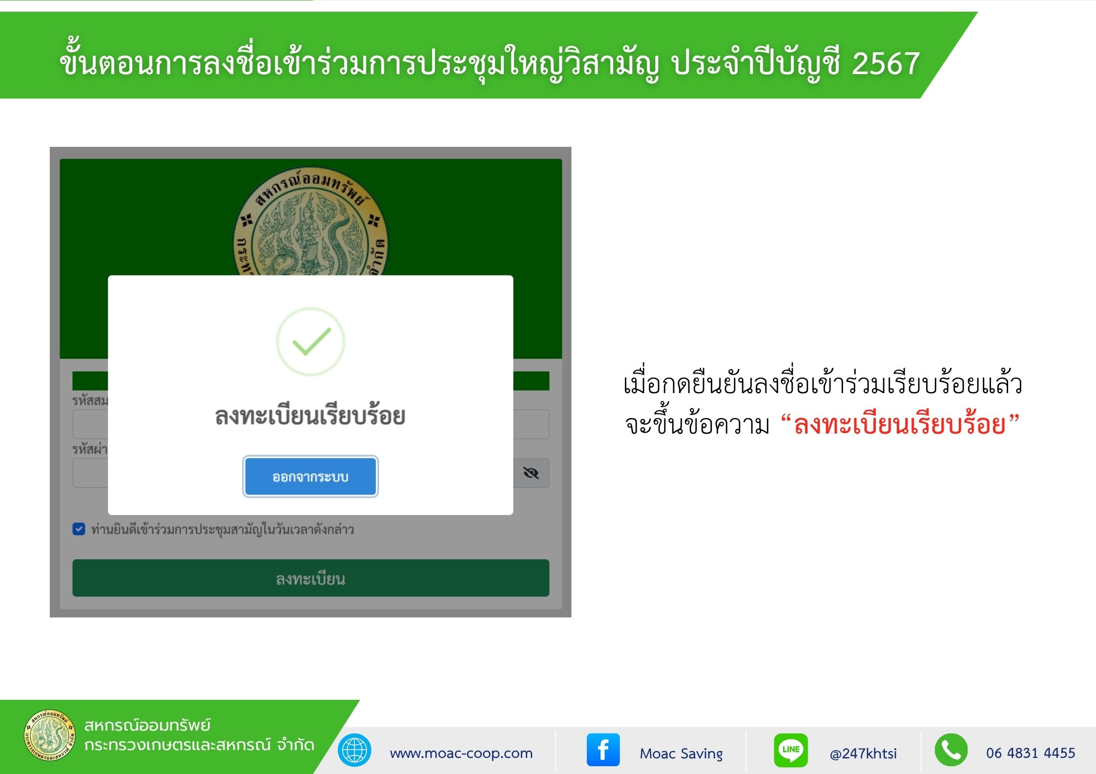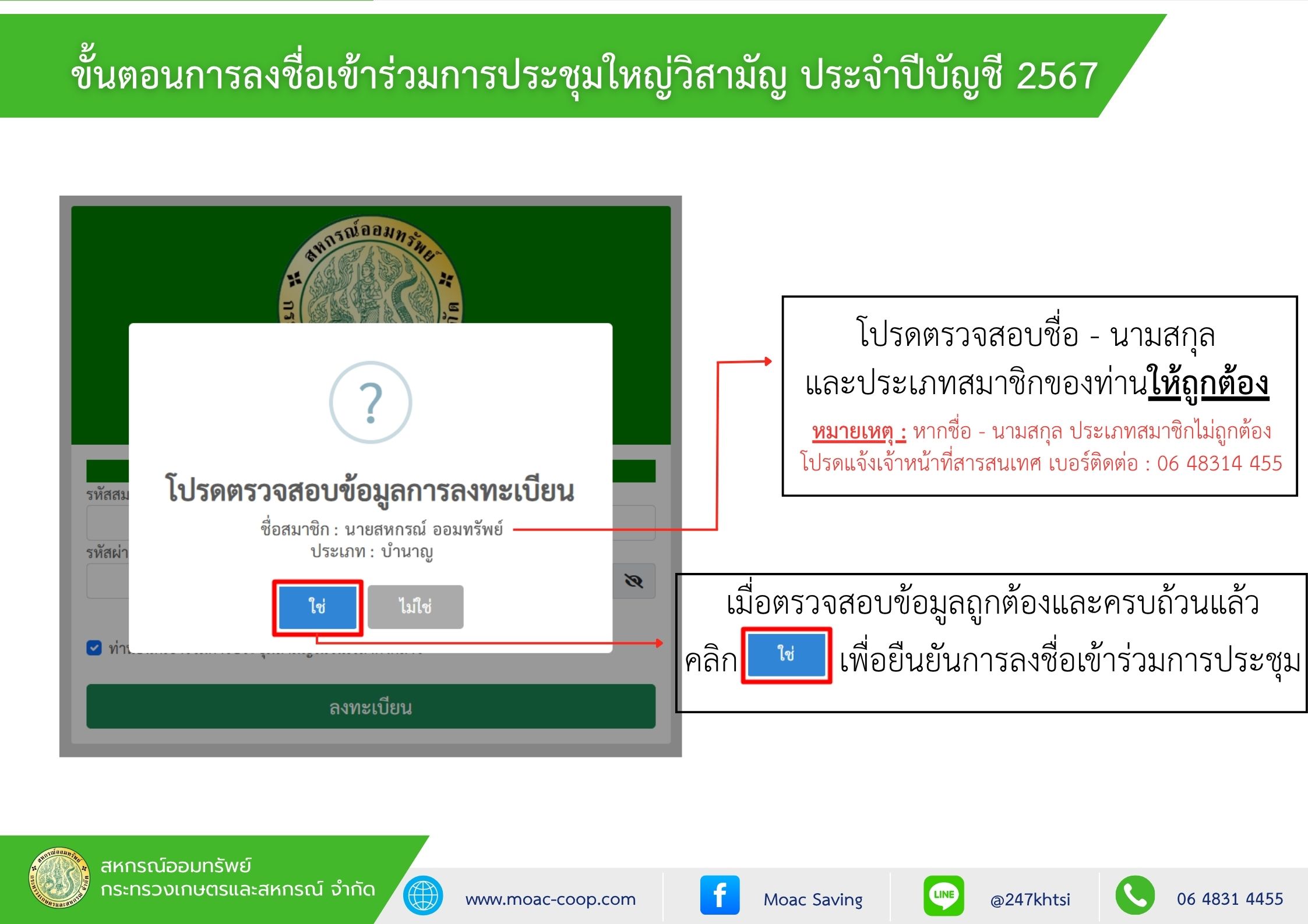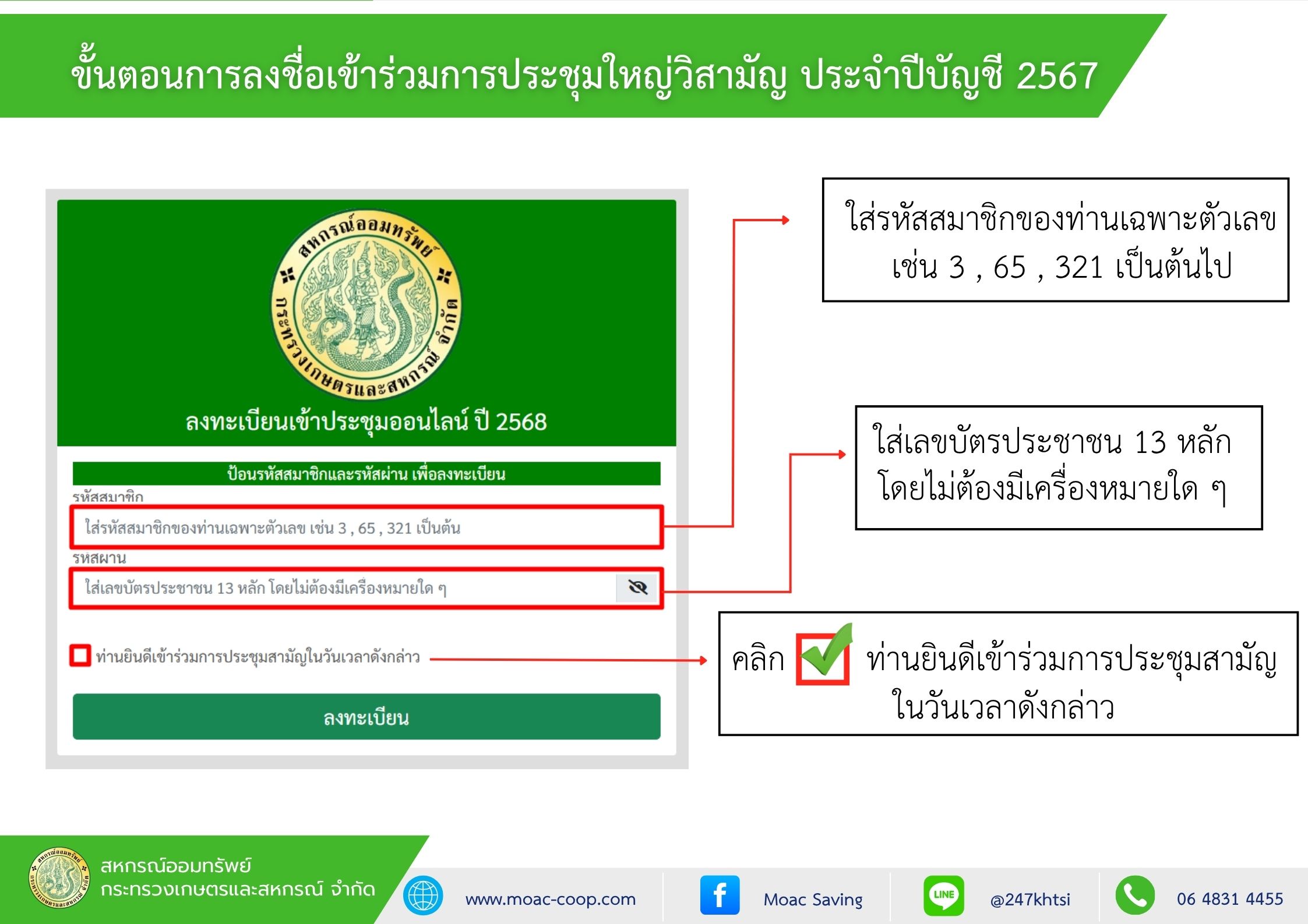 ขั้นตอนการลงชื่อเข้าร่วมการประชุมใหญ่วิสามัญ ประจำปีบัญชี 2567