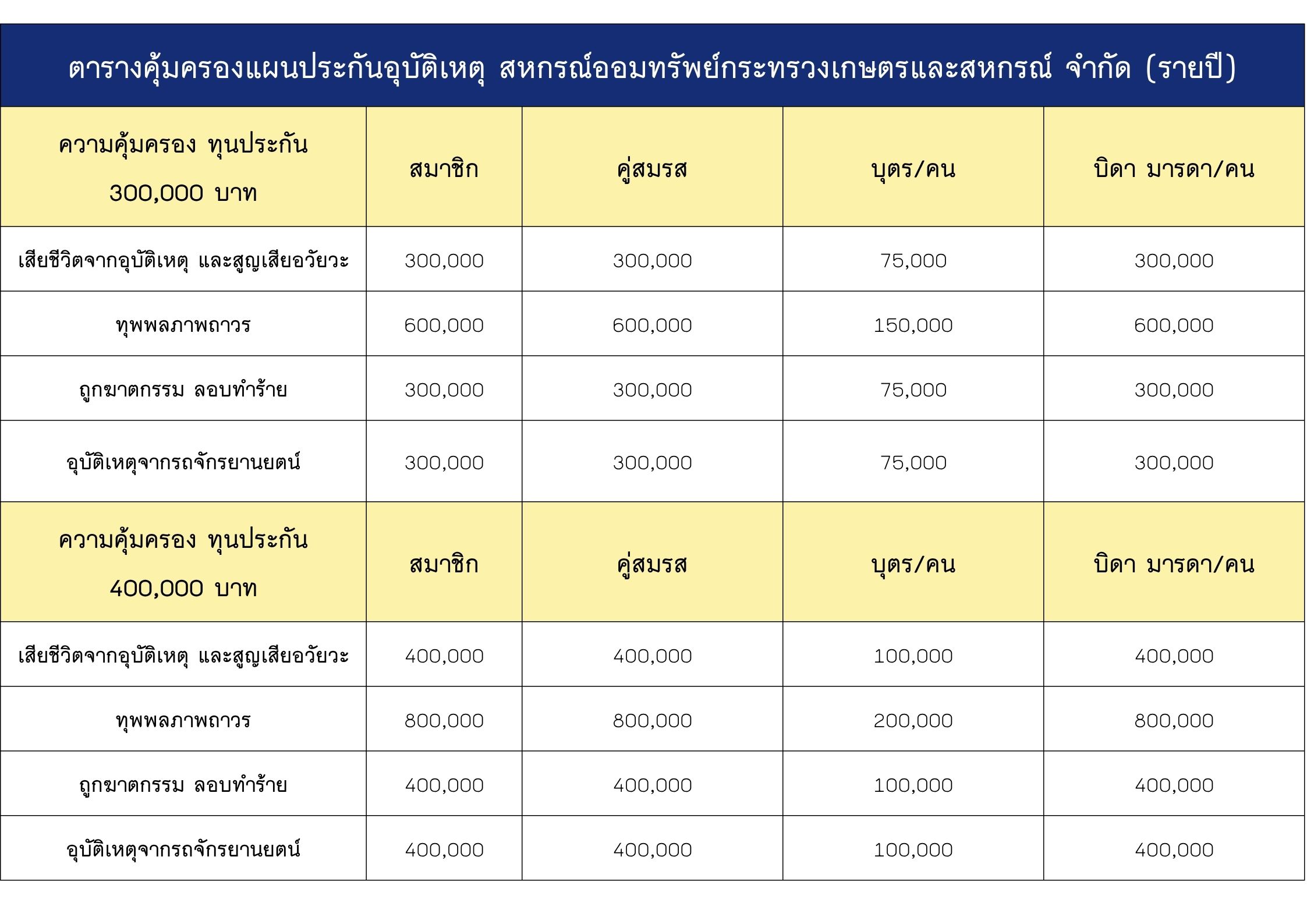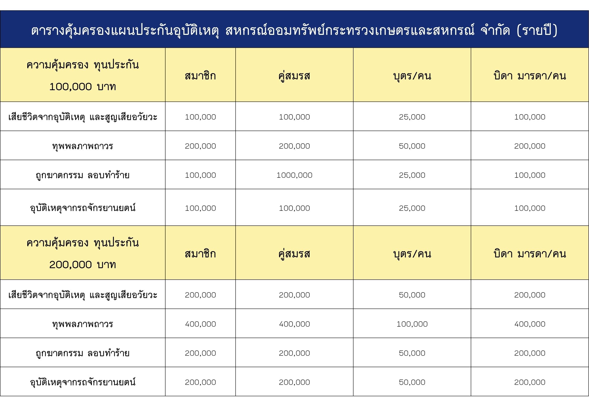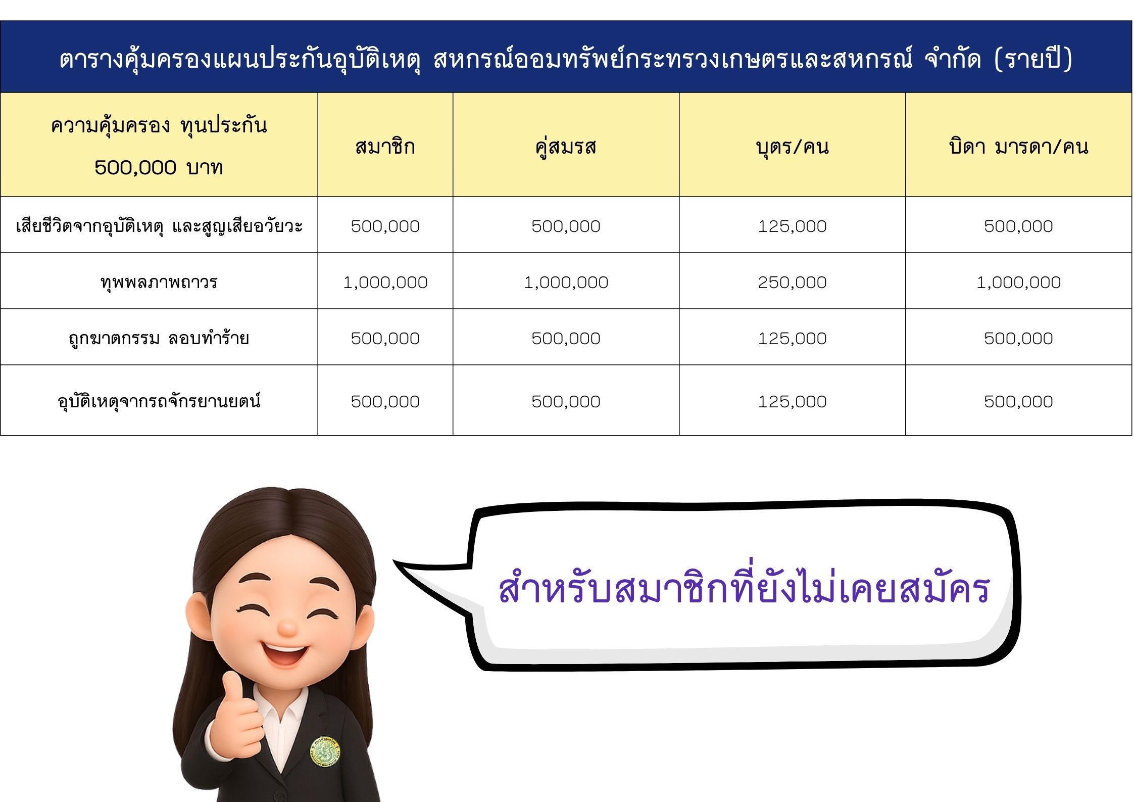 แผนประกันอุบัติเหตุพิเศษทั้งครอบครัว สำหรับสมาชิก สอ.กษ. กับบริษัท AIG ประเทศไทย จำกัด สำหรับสมาชิกที่ยังไม่เคยสมัคร เท่านั้น